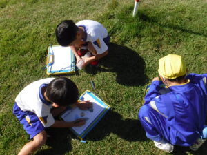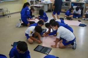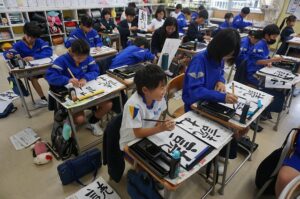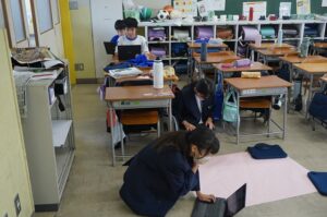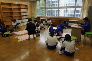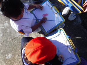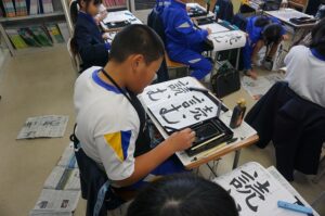 3限目の高学年の様子です。5ー1は自分たちで企画した鬼ごっこ、5-2は書道を行っていました。6年生はグループごとに学習発表会の準備をしていました。子供たちの表情からは楽しさと真剣さが伝わってきます。