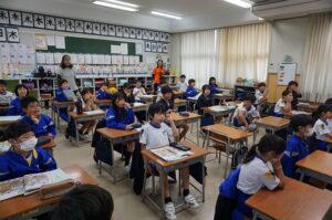 2年生は体育の授業の初めにダンスを踊っていました。3年生は外国語活動の時間にアルファベットの発音練習を行っていました。5年生は国語の授業でグループごとの考えや分かったことをまとめていました。東部っ子の楽しそうな様子が見られました。
