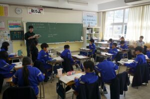 4限目の授業では、1年生がタブレットを使った問題演習と図工の作品作りに、4年生は学級での話し合いと算数の作図に取り組んでいました。
