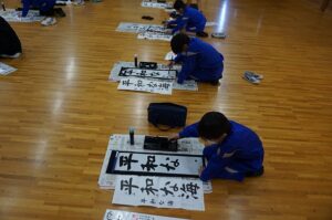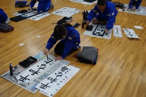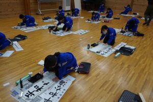 2・3限目に5年生が阿波加先生から書き初めの指導を受けました。昨年から指導を受けていたこともあり、「字体がとても整っている」と先生が言っておられました。冬休みも教えていただいたことを生かしてしっかり練習しましょう。