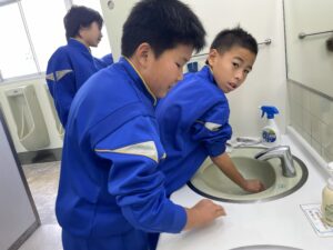 5年生の家庭科では、掃除をする理由や掃除の手順等を学習しました。最後には、自分たちで掃除したい場所を決め、教室やトイレ、玄関、図工室等の掃除を行いました。5年生のおかげで、校内がピカピカになりました。