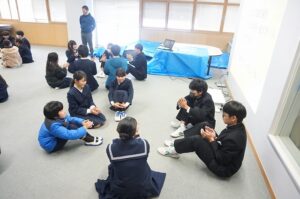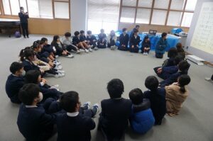 27日と29日に6年生が早月中学校を見学しました。ふれあいホールで中学校について説明を聞いた後、中学3年生のお兄さんやお姉さんと交流しました。優しく接してくれる中学生のおかげで6年生にも笑顔が見られました。中学校のことをたくさん教えてもらって、早月中学校に行くのがとても楽しみになりました。3年生の皆さん、受験等で忙しい中ありがとうございました。