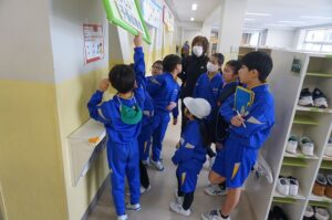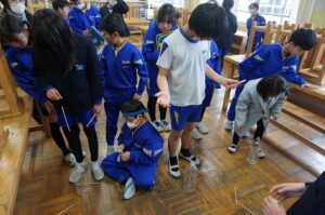 大休憩から3限目に校内オリエンテーリング集会を行いました。校舎の廊下や階段にあるクイズ20問をなかよし班で話し合って答えを導き出しました。また、10種類のミッションがあり、分担したり時には全員で挑戦したりしました。初めての企画でしたが、みんなで楽しい時間を過ごすことができました。企画・運営等を頑張ってくれたにこにこ委員会の皆さん、ありがとうございました。