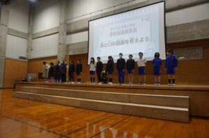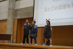 20日(木)の5限目に学校保健委員会を開催しました。「歯と口の健康について考えよう」というテーマのもと、健康くらし委員会の発表と学校歯科医の竹島健太郎先生のお話を聞きました。歯のみがき方や歯によい生活習慣について知ることができました。