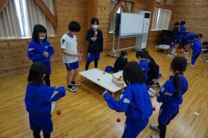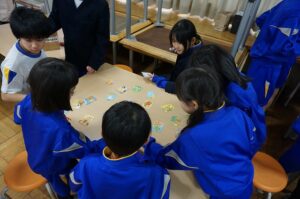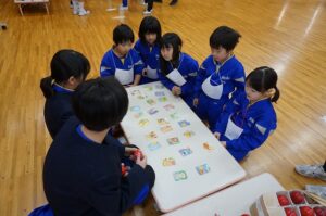 2・3限目に6年生が1年生との交流集会を企画・運営してくれました。自分たちで考え、よく話し合って準備を進めてきました。1年生が様々な遊びを行った後、たくさんの手づくり賞品を6年生から渡されてとても嬉しそうでした。