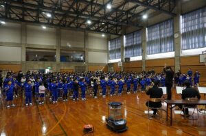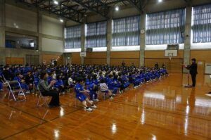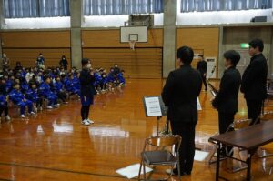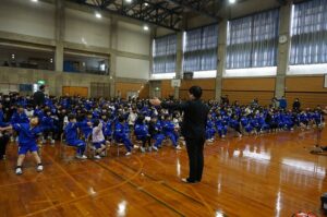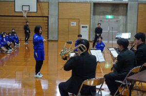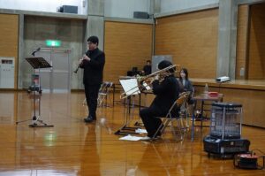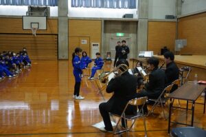 3・4限目に体育館でオオサカ・シオン・ウインド・オーケストラの皆さんによる巡回公演のワークショップを行いました。楽器の紹介や演奏、指揮者体験、全校でのリズム体験など、とても楽しい時間となりました。来月の21日に50人ほど来校されて行われる本公演がとても楽しみです。